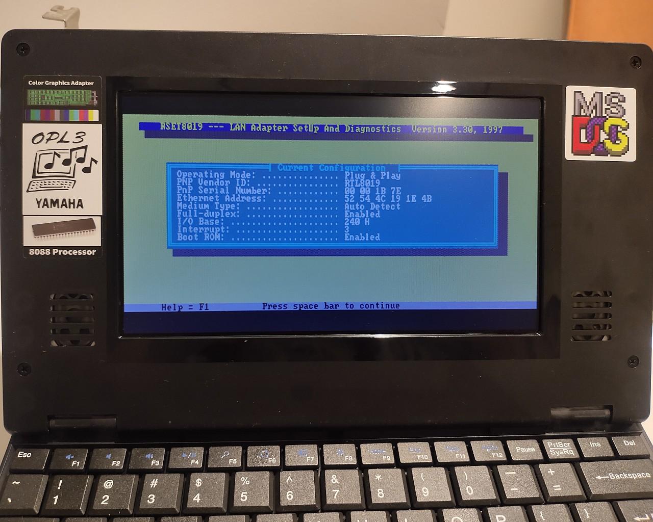 在我的实测中,REST8019工具未必能在所有XT级别的电脑上工作:它无法在Pocket 8086上进行配置,Book 8088上则没有问题,但已经配置好的网卡在所有机器上都工作正常。